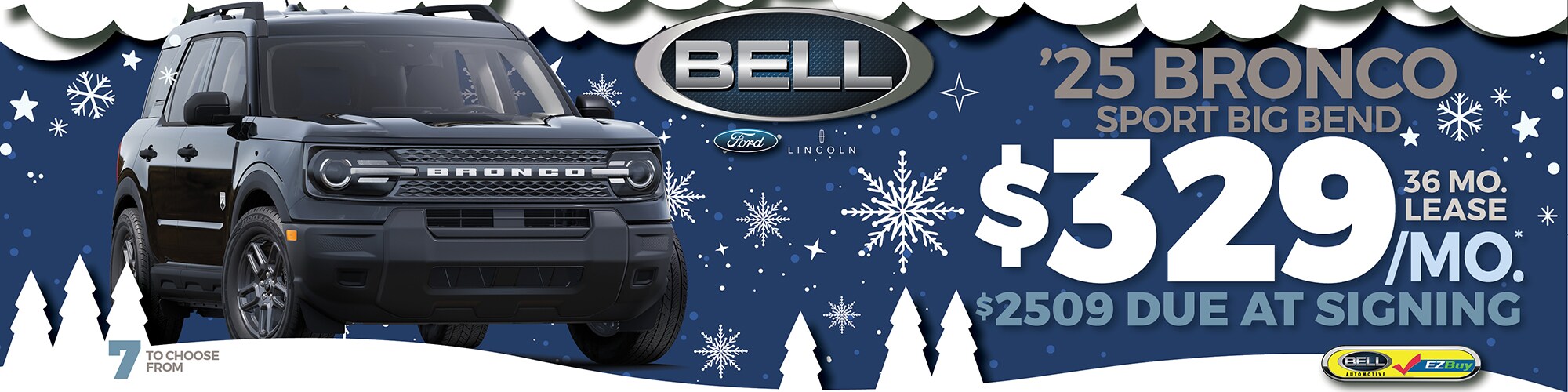 At Bell Ford, we commit to helping auto shoppers find the right model for their current needs through our new Ford Bronco Sport inventory. It starts with listening to the purchase criteria you have set for yourself. Let us know your budget and the specific features that are a priority to you as a driver.
