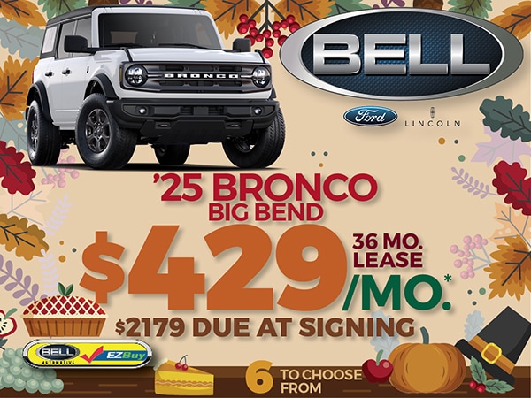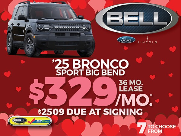 Don't wait! Visit Bell Ford now to get behind the wheel of a great Ford model at the perfect price. Browse our lease deals, offers, and specials online now to secure a payment plan that works for you. Bell Ford is here to help you every step of the way-whether you're shopping with our sales team, working out the details with our finance center, or getting things squared away with our service team. Contact us today to get started!