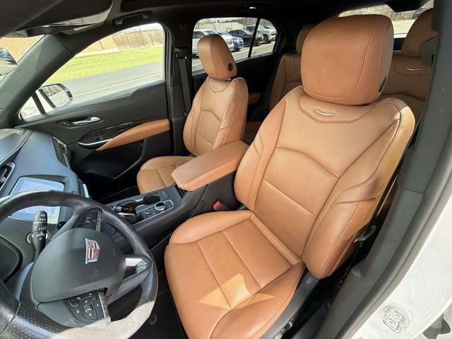 2023 Cadillac XT4 Sport, 4D Sport Utility, 2.0L I4 Turbocharged, FWD, Crystal White Tricoat, 3.47 Axle Ratio, 4-Wheel Disc Brakes, 4.2 Diagonal Color Display Driver Info Center, 6-Way Power Passenger Seat Adjuster, 7 Speakers, 7-Speaker Audio System w/Auxiliary Amplifier, 8-Way Power Driver Seat Adjuster, 8-Way Power Passenger Seat Adjuster, ABS brakes, Air Conditioning, Alloy wheels, AM/FM radio: SiriusXM with 360L, Apple CarPlay/Android Auto, Auto High-beam Headlights, Auto-dimming door mirrors, Auto-Dimming Inside Rear-View Mirror, Auto-dimming Rear-View mirror, Automatic Emergency Braking, Automatic temperature control, Bose Centerpoint Surround Sound 13-Speaker System, Brake assist, Bumpers: body-color, Cold Weather Package, Comfort & Convenience Package, Compass, Delay-off headlights, Driver door bin, Driver vanity mirror, Dual front impact airbags, Dual front side impact airbags, Dual Panel Glass Sunroof w/Power Tilt/Sliding, Electronic Cruise Control w/Set & Resume Speed, Electronic Stability Control, Emergency communication system: OnStar and Cadillac connected services capable, Four wheel independent suspension, Front & Rear Park Assist, Front anti-roll bar, Front Bucket Seats, Front Center Armrest, Front dual zone A/C, Front reading lights, Fully automatic headlights, Garage door transmitter, HD Radio, HD Rear Vision Camera, Heated door mirrors, Heated Driver & Front Passenger Seats, Heated Rear Outboard Seating Positions, Heated Steering Wheel, Illuminated entry, Inteluxe Seat Trim, Knee airbag, Leather steering wheel, Low tire pressure warning, Manual Rake & Telescoping Steering Column, Memory seat, Not Equip w/Ventilated Seat Cushion Blower Motor, Not Equipped w/Fr & Rr Pk Assist/Rev Auto Braking, Occupant sensing airbag, Outside temperature display, Overhead airbag, Overhead console, Panic alarm, Passenger door bin, Passenger vanity mirror, Power door mirrors, Power driver seat, Power Liftgate, Power Lumbar Massage Driver Seat, Power Lumbar Massage Front Passenger Seat, Power passenger seat, Power steering, Power windows, Preferred Equipment Group 1SF, Radio data system, Radio: Cadillac User Experience AM/FM Stereo, Radio: Cadillac User Experience w/Embedded Nav, Rain sensing wipers, Rear anti-roll bar, Rear reading lights, Rear seat center armrest, Rear window defroster, Rear window wiper, Remote keyless entry, Roof rack: rails only, SD Card Reader, Security system, SiriusXM w/360L, Speed control, Speed-sensing steering, Split folding rear seat, Spoiler, Standard Suspension, Steering wheel mounted audio controls, Tachometer, Telescoping steering wheel, Tilt steering wheel, Traction control, Trip computer, Turn signal indicator mirrors, Variably intermittent wipers, Ventilated Driver & Front Passenger Seats, Voltmeter, Wheels: 20 Gloss Black (LPO), Wireless Apple CarPlay/Wireless Android Auto, Wireless Phone Charging (LPO), XT4 Sport, 4D Sport Utility, 2.0L I4 Turbocharged, FWD, Crystal White Tricoat. Crystal White Tricoat 2023 Cadillac XT4 Sport FWD 9-Speed Automatic 2.0L I4 Turbocharged Certified.
